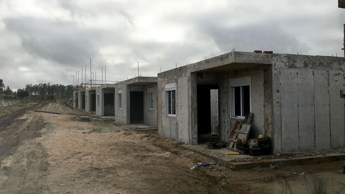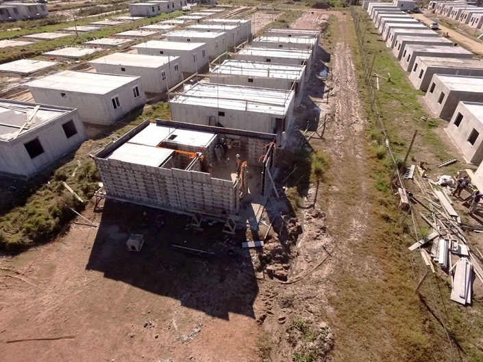 La obra consiste en la construcción de las fundaciones, muros y losas de hormigón de 47 casas y un S.U.M. Las casas se dividen de la siguiente forma: 25 de dos dormitorios, 13 de tres dormitorios y 9 de 4 dormitorios.