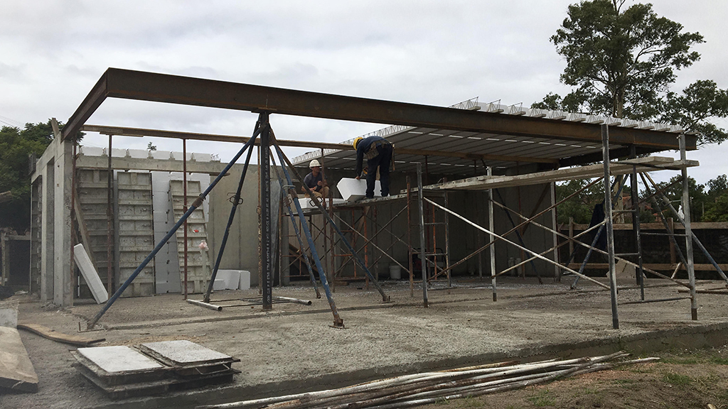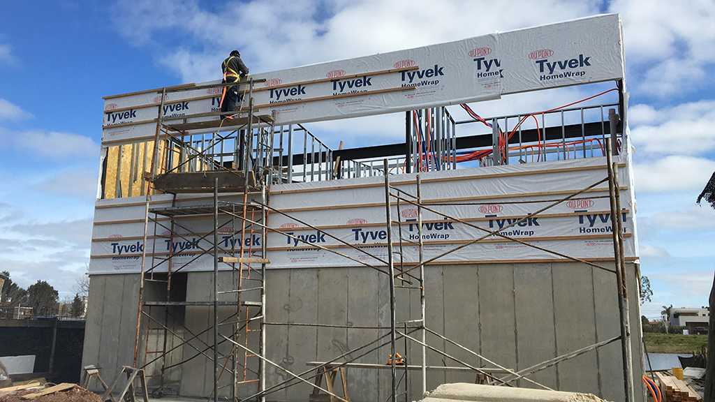 La combinación de estos sistemas permitió lograr ambos deseos del propietario: una planta baja totalmente libre y una fachada hacia el lago completamente vidriada. Así como también la aceleración del tiempo de construcción, en comparación a los sistemas tradicionales que generalmente se utilizan para este tipo y escala de obra.